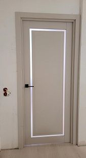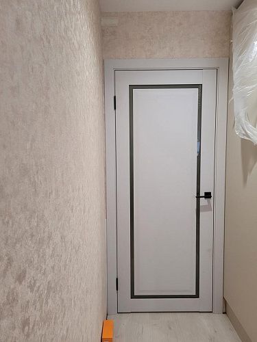 Дверь ПО Queen N23 Велюр светлый стекло белое из Экошпона COVERFLEX (Двери Нева) в с установкой и доставкой