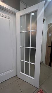 Дверь ПО Queen D8 Велюр белый стекло сатинат белое из Экошпона COVERFLEX (Двери Нева) в с установкой и доставкой
